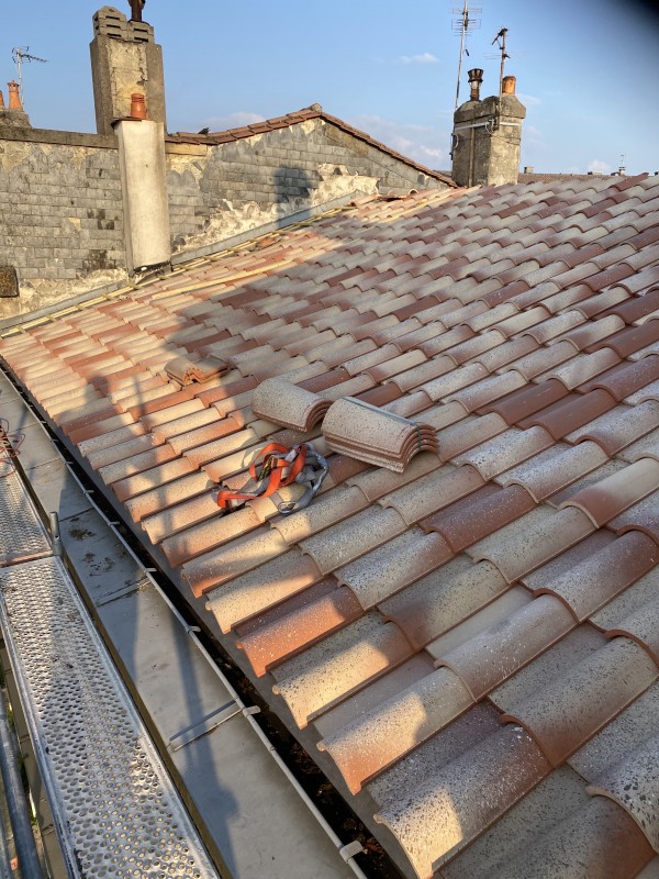Nous avons fini par poser les tuiles qui on été choisies par les architectes des bâtiments de France car dans Le Bouscat nous ne pouvons pas mettre n’importe quelle modèle de tuile.