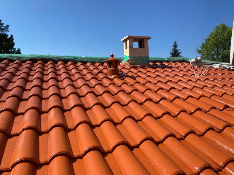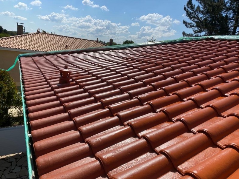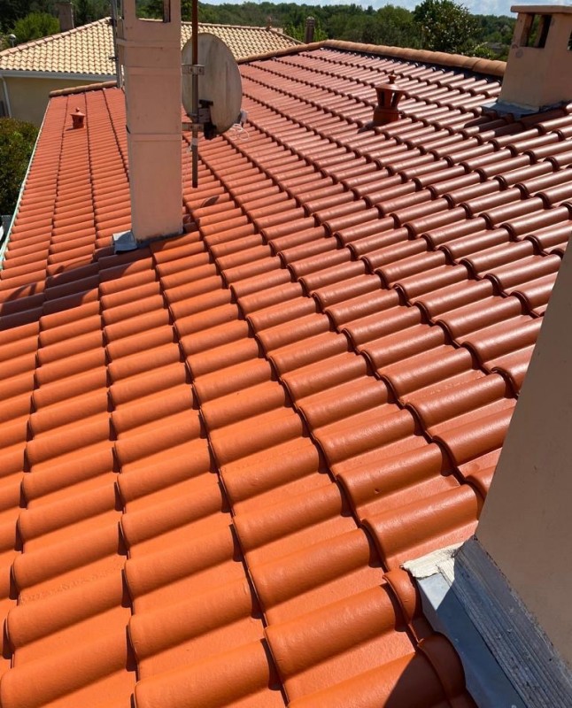 Une fois la toiture propre et sèche, nous avons appliqué deux couches de peinture de haute gamme. Nous utilisons la marque Seigneurie Gauthier, reconnue pour sa qualité et sa durabilité. Cette peinture offre une protection supplémentaire contre les intempéries et apporte une finition esthétique à la toiture.