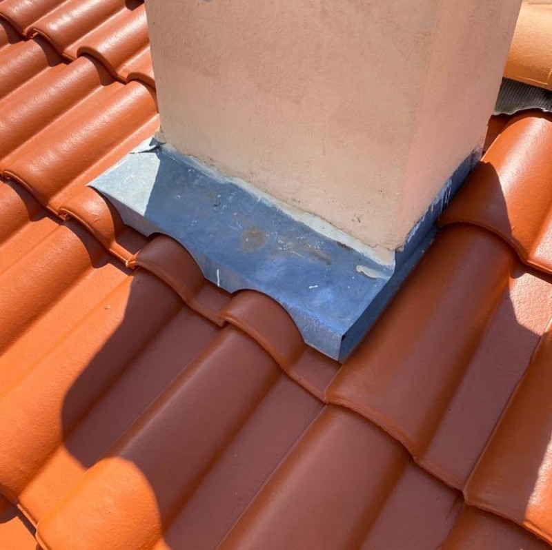 Le processus a débuté par l'application du produit SODICLEAN, produit premium, qui permet d'éliminer efficacement les lichens, les mousses et autres résidus indésirables. Cette étape préliminaire est essentielle pour préparer la surface de la toiture avant le nettoyage à haute pression.